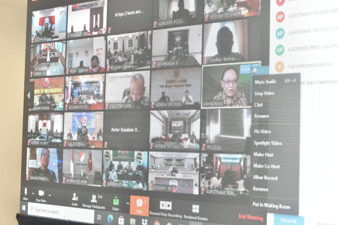 Aster Panglima TNI menyampaikan bahwa pemerintah sampai saat ini telah melakukan berbagai langkah dan cara serta mengkonsolidasikan seluruh potensi dan sumber daya yang dimiliki dalam menghadapi Covid-19. Upaya pemerintah tersebut tentu harus didukung oleh seluruh komponen bangsa. “Dalam hal penanganan Covid-19, TNI diminta maupun tidak tidak diminta sudah mengambil sikap dan menyiapkan diri untuk mendukung penuh kebijakan pemerintah dalam penanganan Covid-19,” katanya.