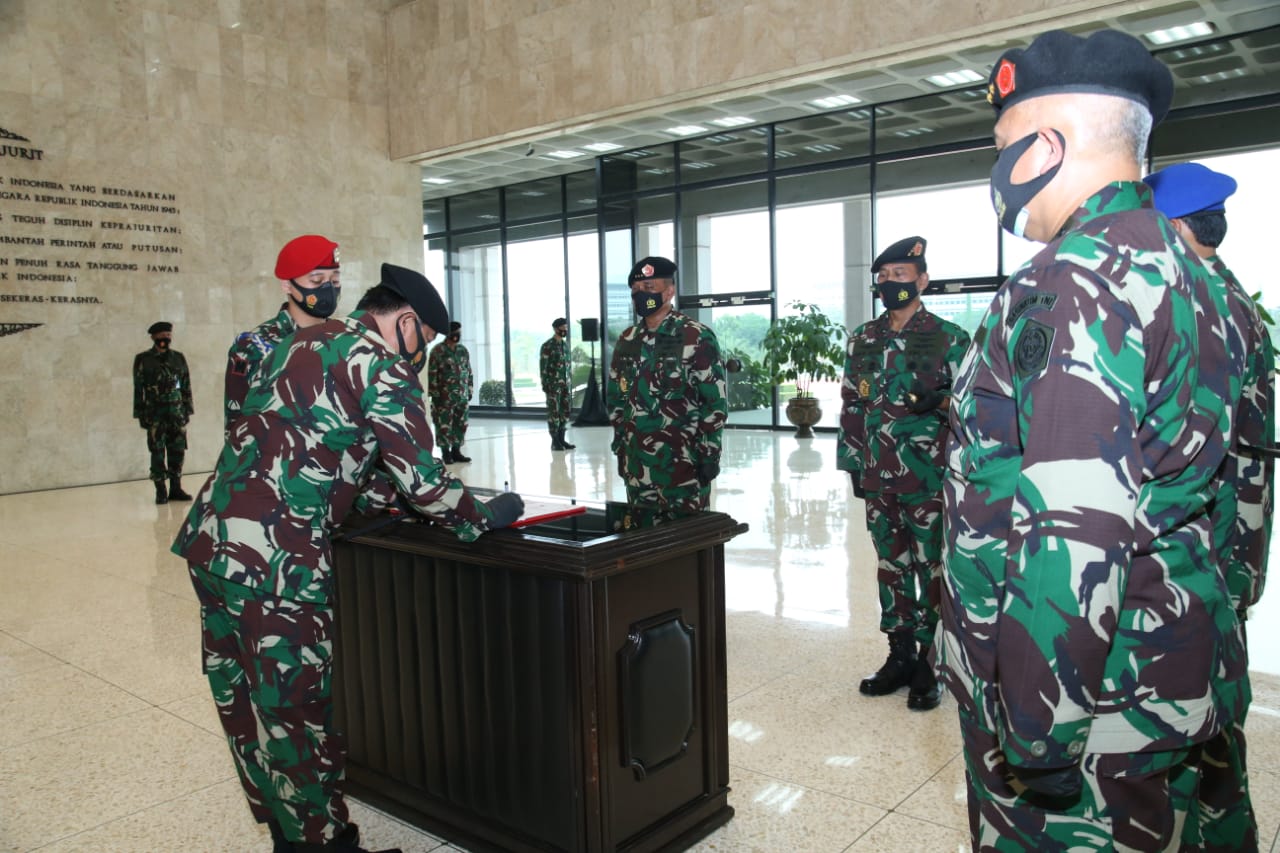 Sebagai pejabat baru, Letjen TNI (Mar) Bambang Suswantono, S.H., M.H., M. Tr (Han) dan Marsda TNI Tamsil Gustari Malik, S.E., melakukan penandatanganan pakta integritas dan berita acara serah terima jabatan, dilanjutkan dengan pengambilan sumpah jabatan dipimpin langsung oleh Panglima TNI Marsekal TNI Hadi Tjahjanto.