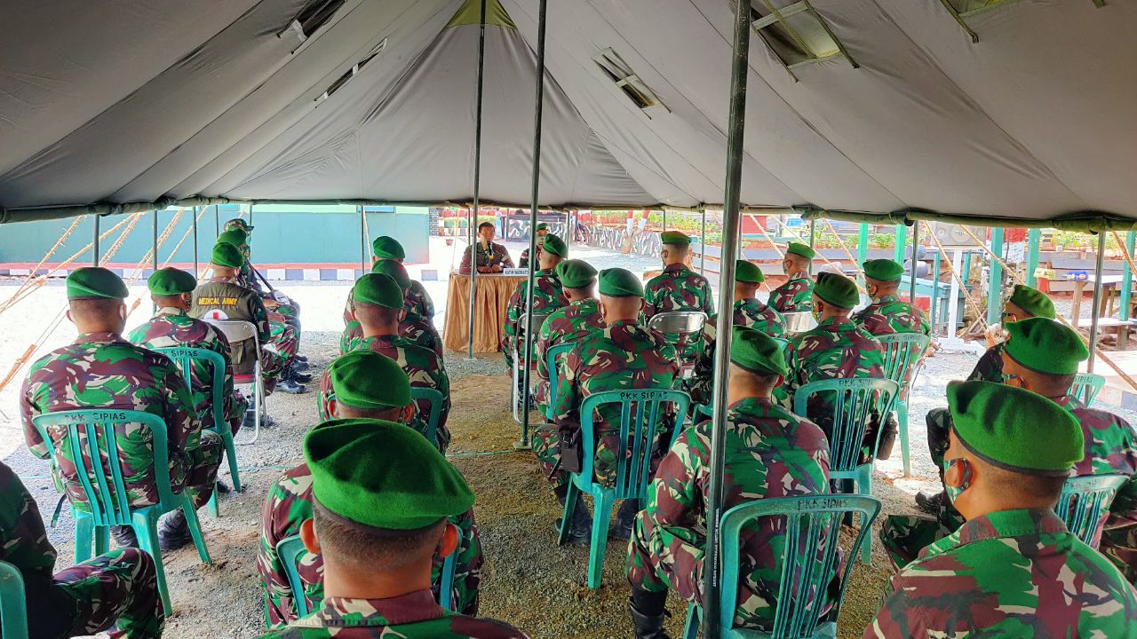 Setelah mendengarkan paparan Satgas, Ketua Tim Wasmatops Letkol Inf Utsman Abdul Ghofir, S.Sos, kemudian memberi pengarahan kepada prajurit Satgas Yonif 125/Si’mbisa.