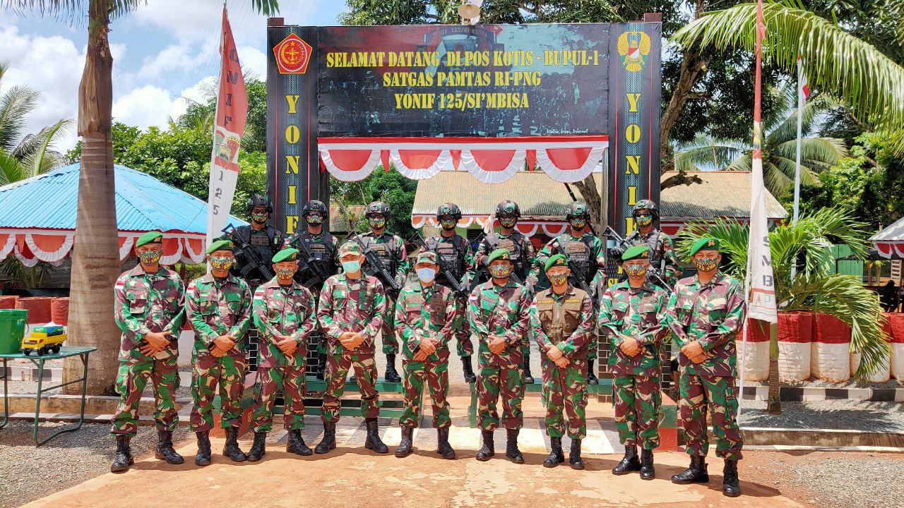 Satgas Pamtas Yonif 125/Si’mbisa di bawah Komando Pelaksana Operasi (Kolaksops) Korem 174/ATW menyambut kunjungan Tim Wasmatops Sopsad ke Pos Komando Taktis (Kotis) Bupul 1 Distrik Elikobel untuk melihat langsung kondisi materil dukungan operasi Satgas.