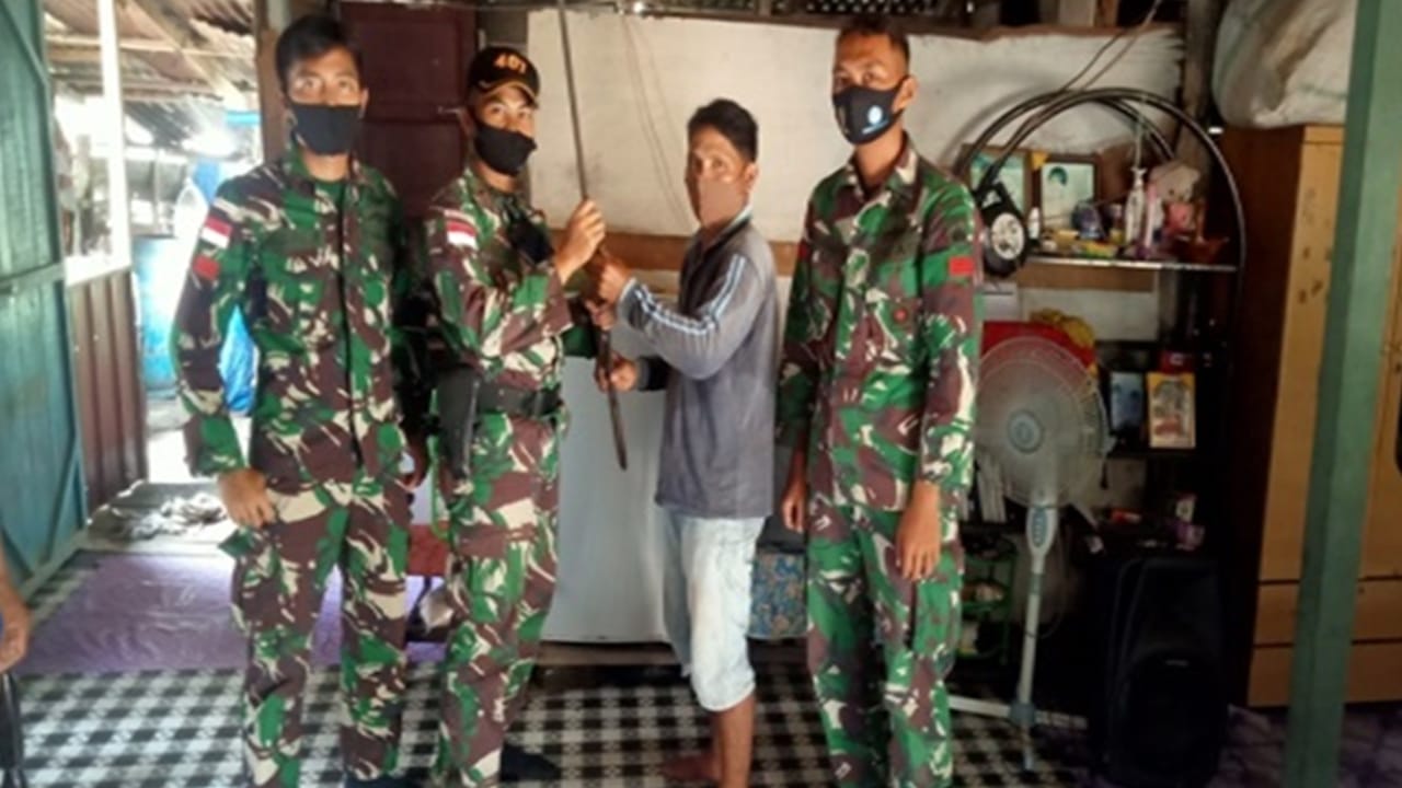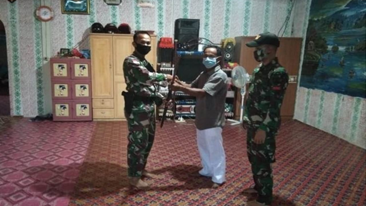 Dansatgas Pamtas RI-Malaysia Yonif 407/PK, Letkol Inf Catur Irawan di Kapuas Hulu, Jumat (13/11/2020), menjelaskan bahwa AM perangkat Desa Sungai Mawang dan Saudara LG secara sukarela menyerahkan senjata berjenis penabur dan lantak yang dimiliknya ke Satgas Yonif 407/PK.