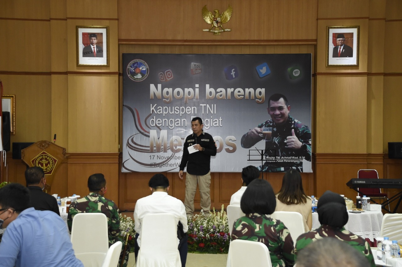 Hal tersebut dikatakan Kapuspen TNI Mayjen TNI Achmad Riad, S.I.P. pada acara pertemuan Keluarga Besar Puspen TNI dengan Pegiat Media Sosial, bertemakan “Ngopi Bareng Pegiat Media Sosial dengan Kapuspen TNI”, bertempat di Aula Balai Wartawan Puspen TNI Cilangkap, Jakarta Timur, Selasa (17/11/2020).